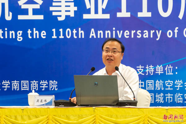 吴基伟讲述航空事业的发展历程(谢丰 摄)