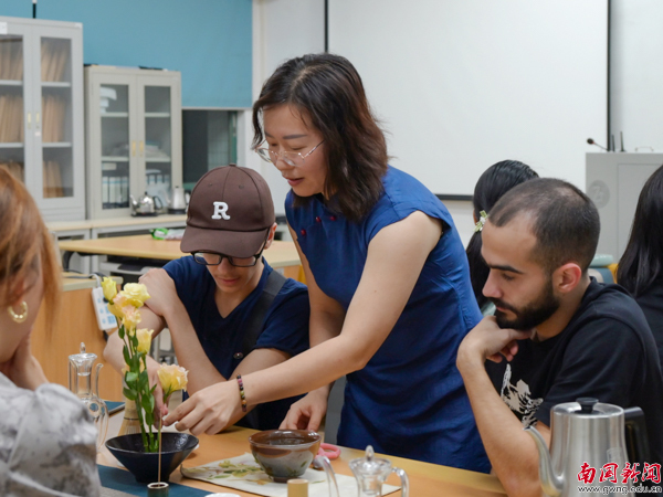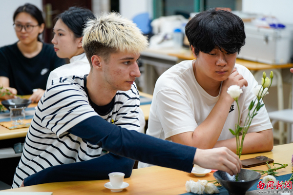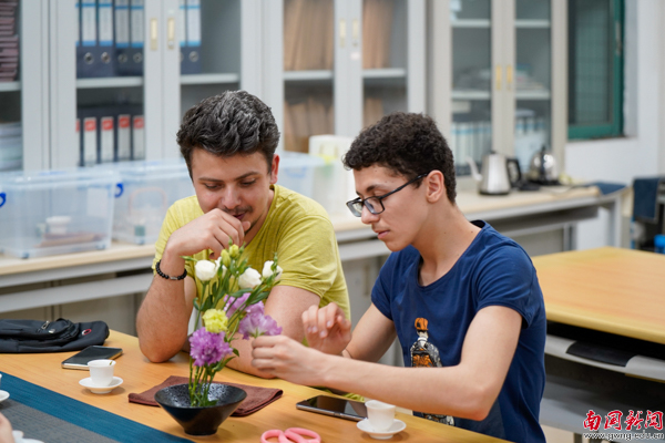 留学生们体验插花(陈源霖 摄)