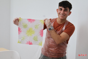 有别于传统扎染的素雅风格,留学生作品展现出独特的风格:大胆的撞色搭配与创新技法,让东方传统技艺与西方审美理念碰撞出新颖火花。随着对工艺的熟悉,部分留学生从初期需要全程指导,到后期已能独立完成扎染全流程操作。