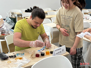 作为中国民间传统染色工艺,扎染技艺于2006年被列入国家级非物质文化遗产名录。此次体验课以“小老师”为纽带,以非遗为载体,生动诠释了中华文化的开放包容,为促进多元文化交融提供了创新范式。(国际学院 尹向红 李思宇 文化与传播学院 汪贝娅 钟嘉淇)