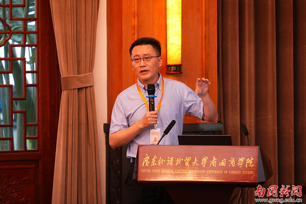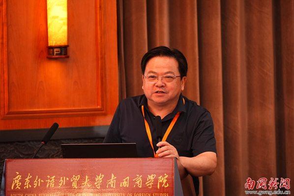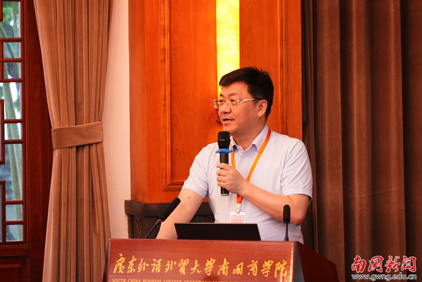 在随后的议程中,与会人员首先观看了广东外语外贸大学南国商学院的宣传片,全面了解了学校的办学特色和优势。在主题发言环节,我校招生就业指导处副处长郑芝鸿系统解读了2025年招生政策,着重阐述了学校在学科建设、人才培养和国际合作方面的新举措