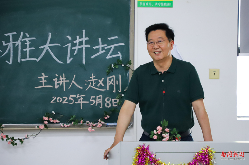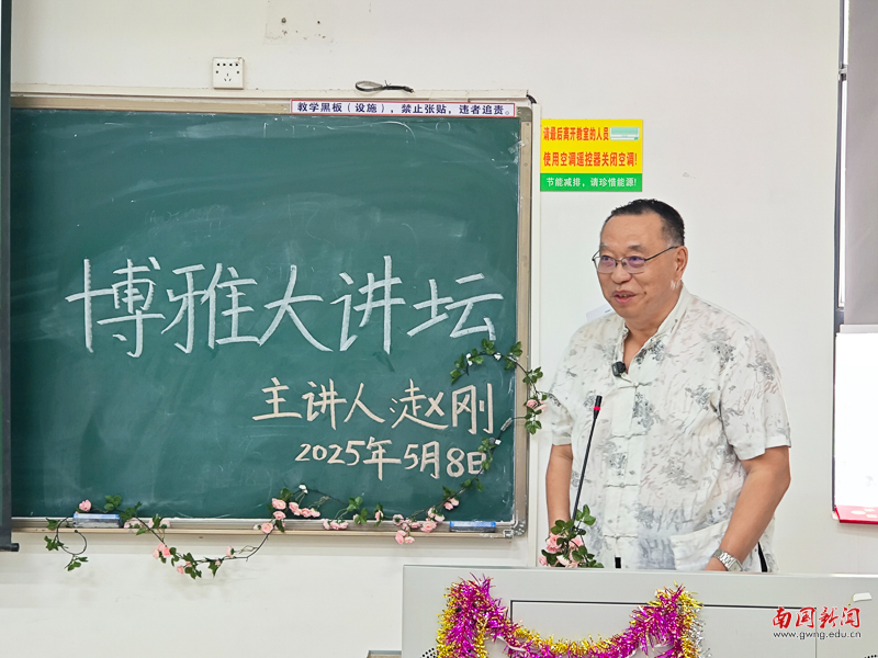 本网讯 5月8日,由广外南国教务处主办、教育学院协办的博雅大讲坛于G101开展。此次讲座以 “家庭教育学:事关人生质量的重要学科” 为主题,特邀东北师范大学家庭教育研究院院长赵刚教授作为主讲嘉宾,为我校师生带来了一场深刻而富有启发的教育课堂。我校副校长王铭玉教授、教育学院副院长肖建芳教授、小学教育系专业负责人白彦茹教授、教育学院院长助理魏迅鸿老师、教育学院党总支书记梁立为同志、小学教育系主任曾娇博士、应用心理学系副主任梁恺欣博士、教育学院曹谨老师以及来自校外的珠海市教育局家庭教育专班江海老师、珠海市金湾区虹晖小学董雯瑶主任出席了本次讲座。