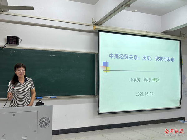 而关于中美经贸摩擦的深层原因,段秀芳从政治、经济、文化等多个层面进行了深入解读,指出这不仅涉及到贸易利益的争夺,还与两国的战略布局、国际地位等因素密切相关。最后,段秀芳分享了自己对中美经贸关系的深刻认识,鼓励师生们以客观、理性的态度看待这一复杂的经贸关系,为未来的研究和决策提供有益的参考。