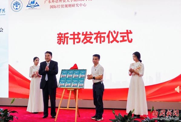 南国商学院副校长王关义主持开幕式并介绍国际经贸规则研究中心成立背景,中心经省社科联批准设立,已成为服务大湾区经贸研究、推动国际规则创新发展的重要高端平台。