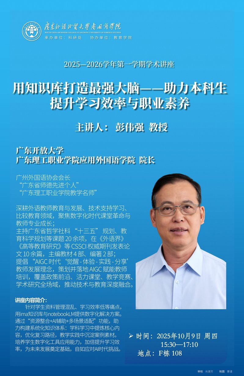 讲座时间:2025年10月9日(周四)15:30——17:10