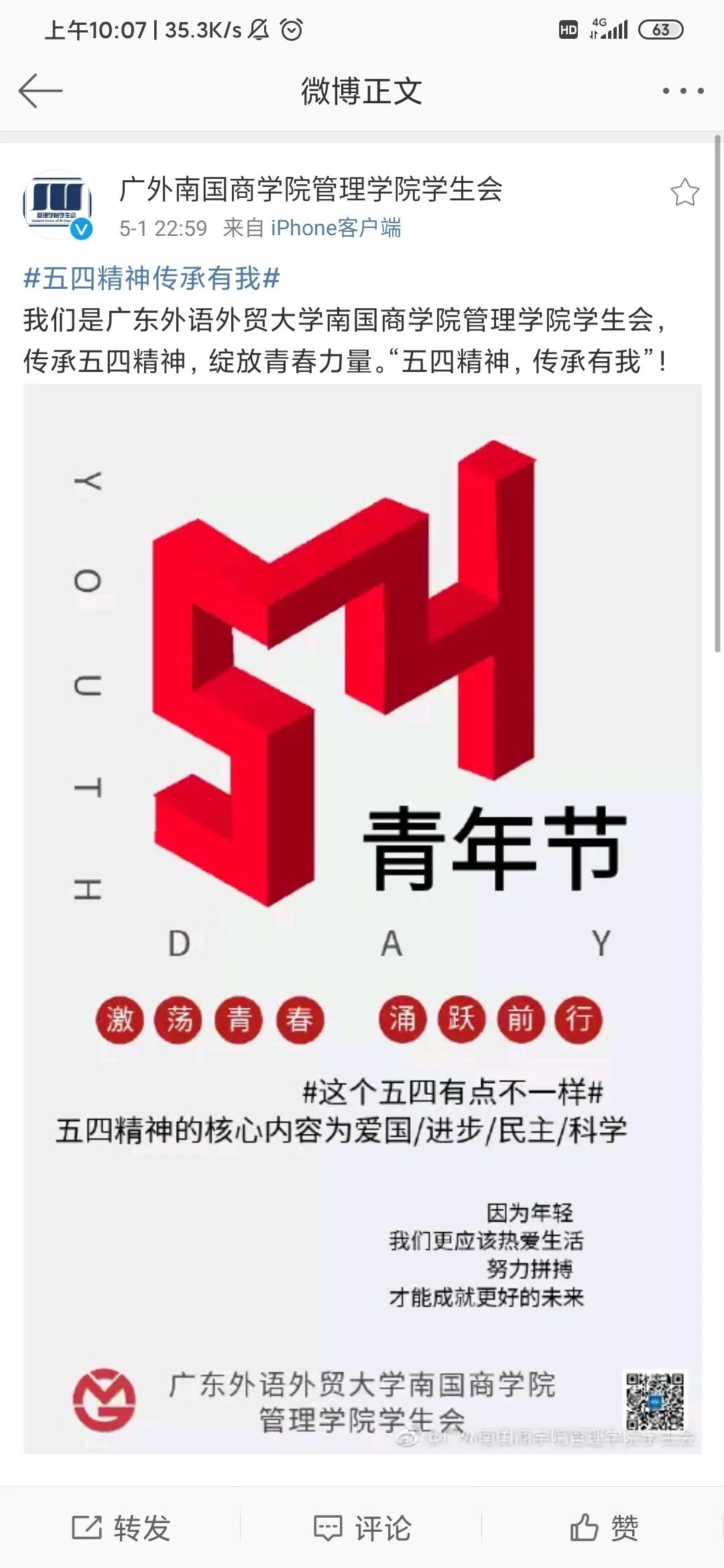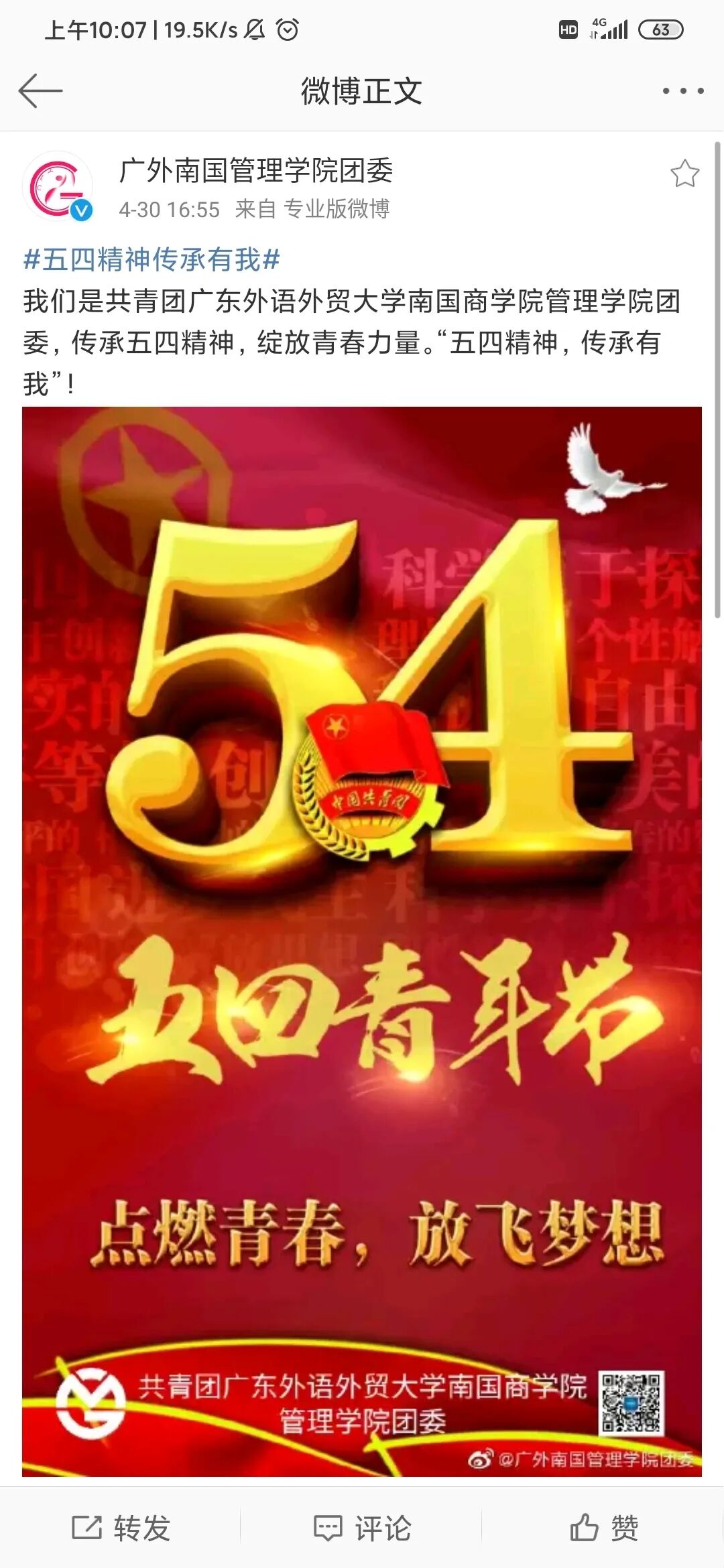 管理学院团委学生会为此开展“五四有我,绽放青春”主题活动,组织学生积极响应团中央号召,发扬与传承“五四”青春力量!