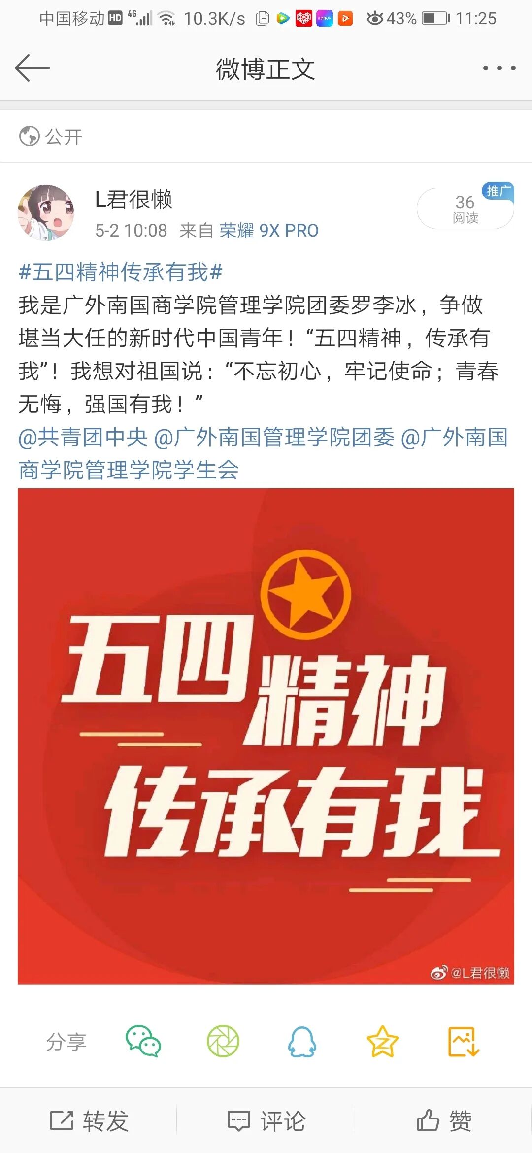 管理学院团委学生会书记处主席团积极响应由共青团中央发起的征集令“五四精神,传承有我”活动。