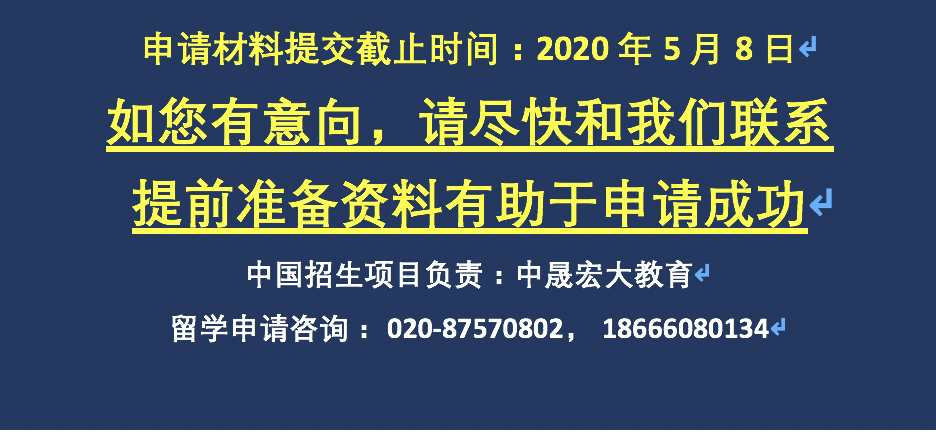 特别说明:2020 年因为签证问题不能按时在秋季来美国,可以选择秋季在国内上网课,然后春季来美国;也可选择 2021 年春季入学。