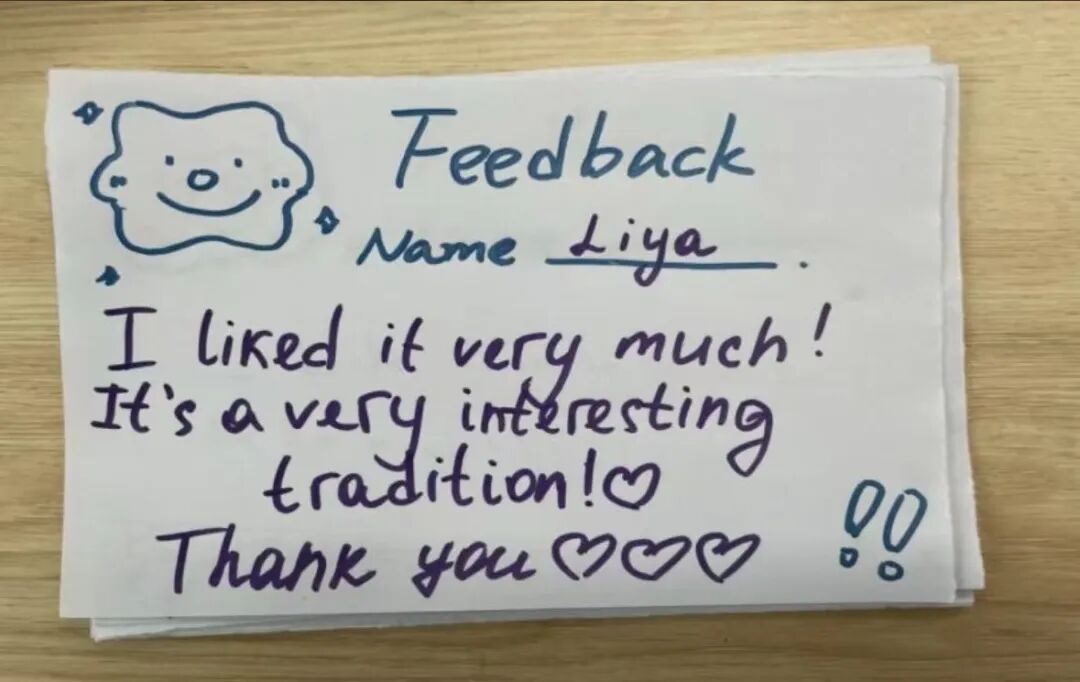 最后,留学生们写下了自己对本次活动的反馈,他们认为这次剪纸体验课既传统又有趣,他们非常喜欢这样的活动。