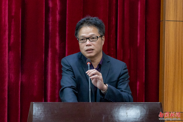 本网讯 1119日下午,学校组织召开学习贯彻党的十九届六中全会精神专题宣讲报告会暨党委中心组(扩大)专题学习会,邀请广东外语外贸大学谢文新教授担任主讲人。校领导、党委委员,党史学习教育领导小组成员,各党总支部(直属)书记,全体辅导员,学生党员代表参加学习。党委书记许志超主持学习会。