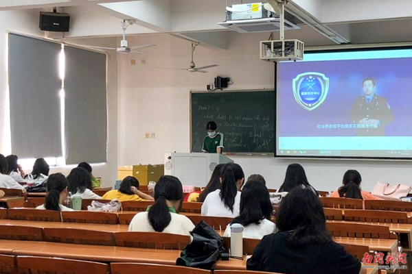 此外,中文学院各年级和班级还陆续开展了防诈骗主题班会,通过列举案例和观看视频,让同学们了解诈骗分子的套路,进一步提升防诈意识。2021级汉语言文学3 班的连政同学表示,由于诈骗分子过于狡猾,经常更新诈骗手段,因此我们需要时常关注防诈骗信息和新闻,避免被新手段“套路”,若不慎被骗一定要尽快报警,及时止损。