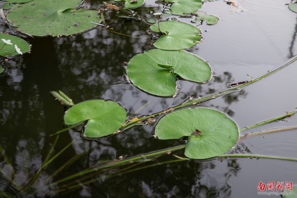 但在实验楼南侧,有这么一洼废弃水塘,原本是用于大楼雨水排放,但因长期积水加上枯枝落叶沉积,导致藻类及各种浮游生物繁殖引发污染。天气炎热时水色发黑,蚊虫飞舞,时有臭味飘出,师生都唯恐避之不及。