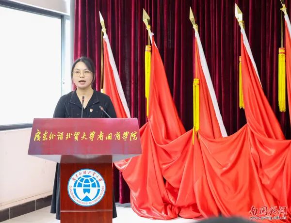 (中文学院第二党支部书记梁秋燕汇报工作)