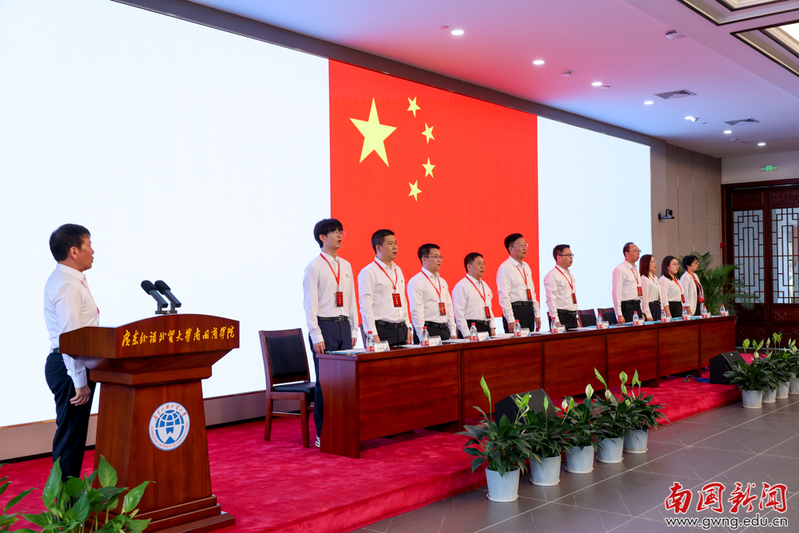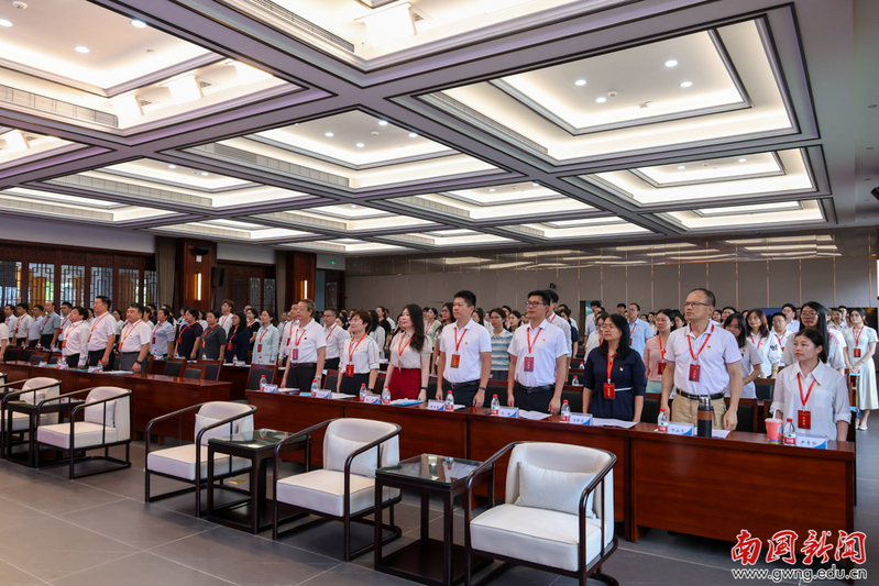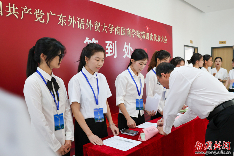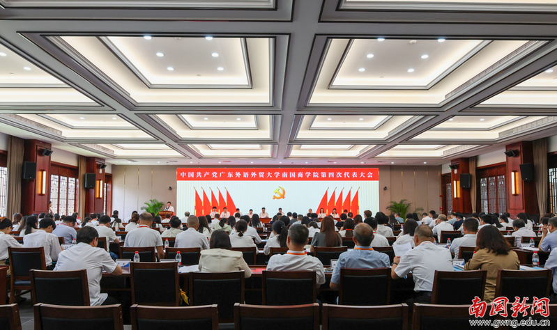 本网讯 6月12日下午,中国共产党广东外语外贸大学南国商学院第四次代表大会(以下简称“第四次党代会”)第一次全体代表大会在国际学术报告厅召开。党委书记许志超同志作党委工作报告。本次大会共有正式代表140名,实到代表123名。党委副书记、校长王华同志主持开幕式。当天学校收到了中共广东省委教育工作委员会发来的贺信,祝贺大会的召开。