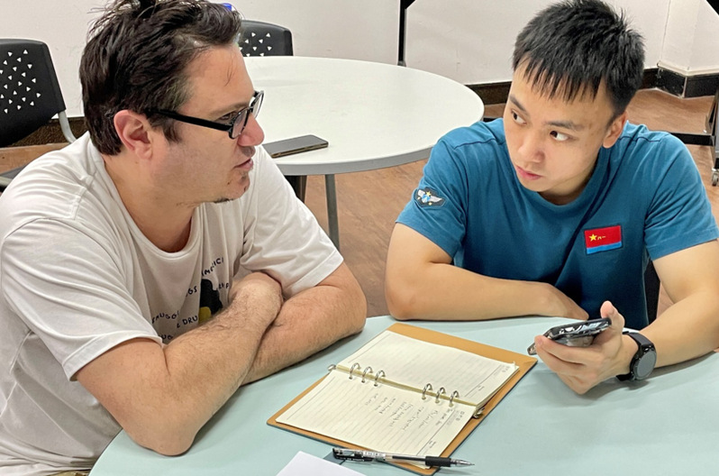 “外教写作一对一辅导”是我校语言中心本学期开展的一项全新活动,由大学英语教学部邀请我校外籍教师为有写作需求的同学进行辅导,参与活动的同学将自己完成的英语写作素材与外教进行“一对一”交流。辅导过程中,外教首先会快速浏览同学们的写作素材并对其中存在的语法错误进行纠正,同时也会做相关语法知识的拓展;然后外教会帮助同学们理清作文的结构问题,给出更多的写作建议。时间充分的情况下,外教还会让同学们朗读自己的作文并纠正一些发音问题。 每周两次的“写作一对一”辅导在本周一(3月21日)和周四(3月24日)顺利举办,分别由外教Kevin 和Paul担任指导老师。活动中,指导老师利用一对一的模式给每一位参加活动的同学们进行细致地辅导,指出同学们写作中存在的语法错误和作文结构错误,并在同学们朗读自己作文的过程中纠正发音错误。