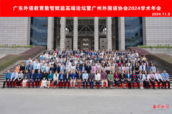 11月9日,由广州外国语协会主办的广东外语教育数智赋能高端论坛暨广州外国语协会2024学术年会在广州商学院第一报告厅隆重举行。来自广州市社会科学界联合会、广州外国语协会等单位及全省高校的外语教育界专家学者、一线教师以及相关行业研究人员300余人齐聚一堂,围绕“数智赋能外语教育——创新、融合和发展”主题,共同探讨数智赋能外语教学中的潜力与挑战,展示广东外语教育的创新成果。我校副校长曾用强教授受邀出席并发表主旨演讲,大英部教师代表随团参会。