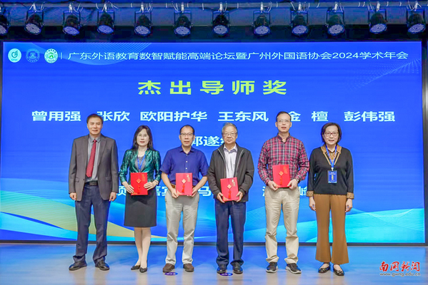 开幕式上,广州外国语协会表彰了外语教育领域杰出贡献的导师、团队和个人。曾用强等7位专家获评协会“年度杰出导师奖”,另有11位学者获评“年度卓越贡献奖”,12所院校获评“年度优秀团队奖”。