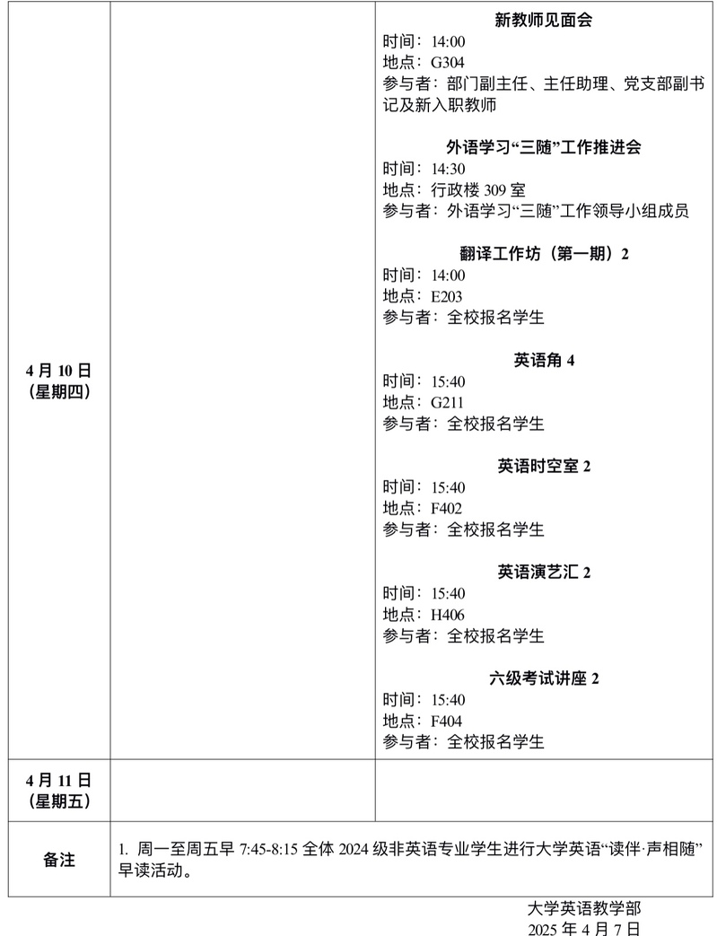 2025年春季学期第7周会议和活动安排表