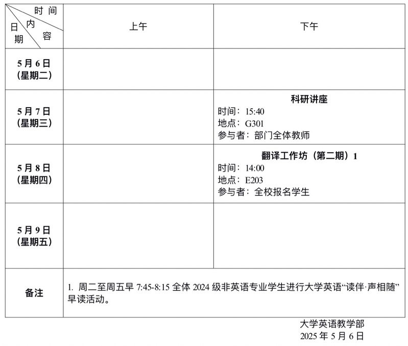 2025年春季学期第11周会议和活动安排表
