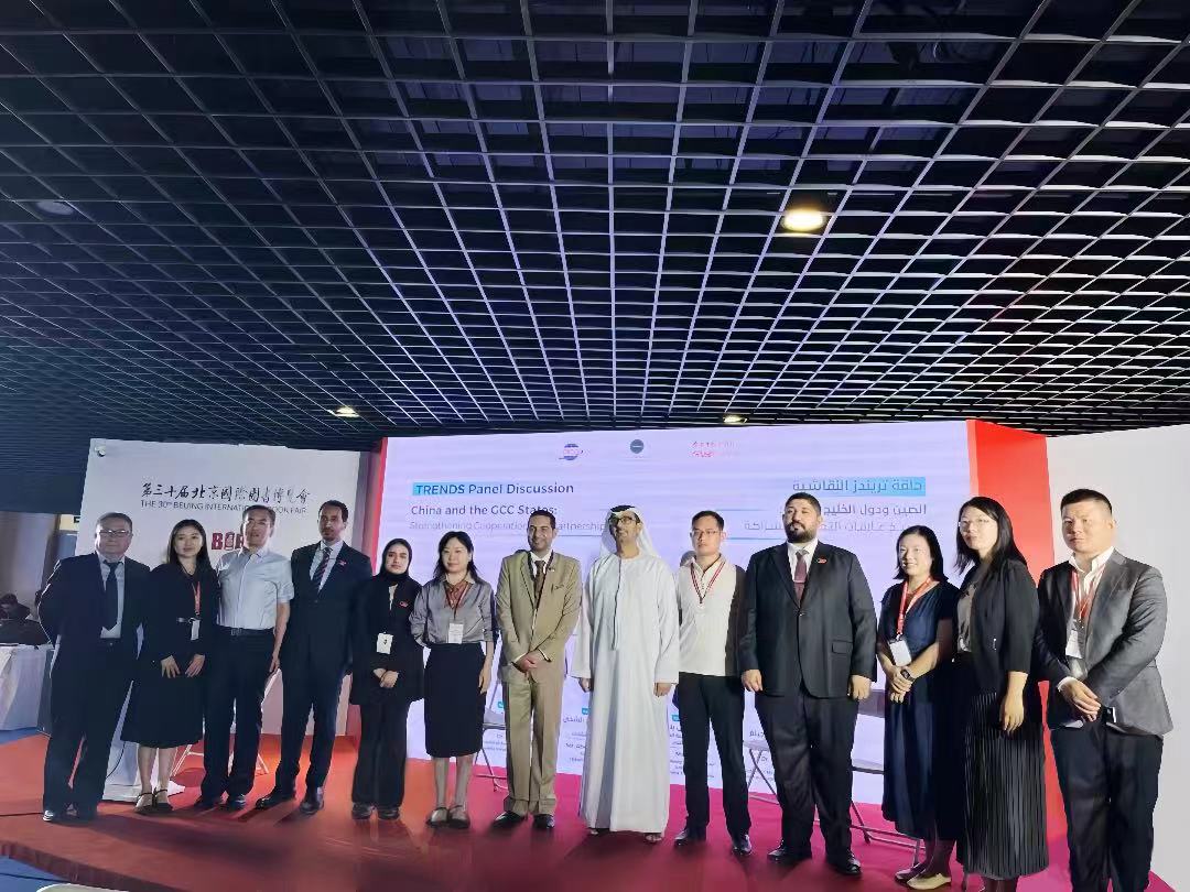 “面向新时代的中国与海湾阿拉伯国家关系”的今日中国会客厅学术沙龙在国家会议中心举行,中国外文局副局长于涛、趋势研究中心首席执行官穆罕默德·阿里分别致欢迎词,阿联酋驻华大使侯赛因·哈马迪、中国外文局欧非中心主任赵丽君等来自中阿政府、媒体、智库、高校的各界代表50余人出席活动。米吉超老师就中国与阿拉伯海湾国家的经贸合作前景展开深入交流,分别从数字经济、新能源开发、旅游与金融市场领域分析中海经贸的合作机遇,并从中海建交史、全球最大单体光伏电站在阿联酋的落成、贸易额的增长、旅游航班次增加等方面阐述中海经贸合作的广阔前景。