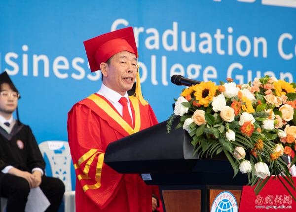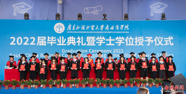 The ceremony started in the solemn sound of the national anthem. Executive President & Prof. Wang Hua delivered a speech, in which he extended his warmest congratulations and most heartfelt wishes to all graduates of 2022 on behalf of SCBC. He recalled the extraordinary experiences shared together with the graduates during the past four years with such moments as celebrating the 70th anniversary of the founding of the People’s Republic of China, fighting against the Covid-19 pandemic, and witnessing the centenary of the Party. Now on the day of commencement, their painstaking efforts had led to a milestone of their life as they embarked on a new journey.