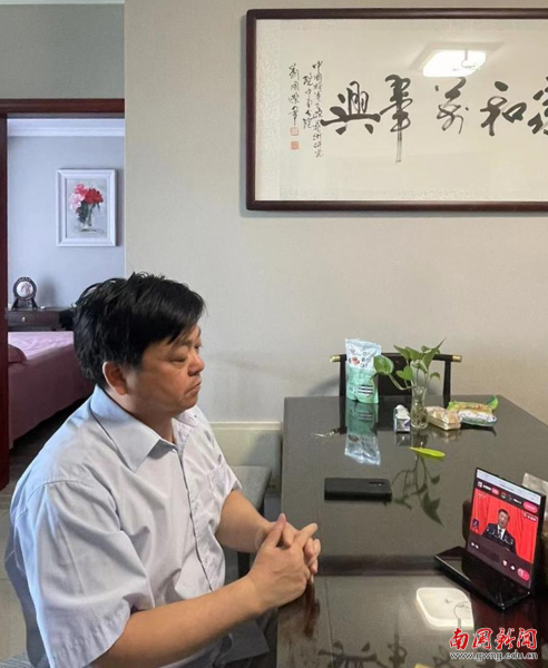 九三学社广东省委直属南国商学院支社主委、副校长赖志立收看习近平总书记在大会上作报告