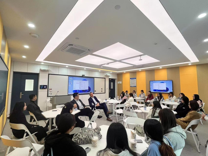 在互动环节,学生们踊跃提问,问题涵盖课程安排、住宿条件及就业前景等。柯林斯副校长、凌雄辉主任和姜沅松科长耐心解答,现场气氛热烈。