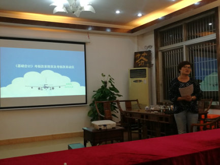 会议的第三个板块是课程考核改革动员。文佑云副院长就《基础会计》考核改革效果和学校云教学中心建立课程题库向大家做了详细汇报,就本学期将要进行的《中级财务会计》等九门课程的考核改革工作做了动员。