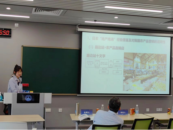 谢婕老师分享的主题内容是《日本“地产地消”模式探讨:兼论对我国农产品营销模式的启示》,报告分别从:地产地消理论概述,日本“地产地消”模式借鉴,我国农产品营销现存问题,日本“地产地消”模式对我国农产品营销的启示三大方面进行了分享。该选题新颖,具有现实价值与意义,受到了会场嘉宾们的提问与关注。双方进行了深入的交流。本次学术会议反映了我院教师的科研成果受到了同行们的关注和认可。