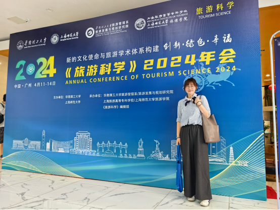 2024年4月11-14日《旅游科学》编辑部与华南理工大学旅游管理系/旅游发展与规划研究院共同于华南理工大学召开主旨为“创新、绿色、幸福”,主题为“新的文化使命与旅游学术体系构建”的年会,旨在汇聚国内外文化和旅游研究领域的专家学者,分享研究成果和经验,共同探索新的文化使命下旅游学术体系构建相关问题。本次会议集聚了国内多家知名高校学者共同分享交流,包括:清华大学、香港理工大学、四川大学、华南理工大学、中山大学、上海师范大学、广东财经大学、云南大学等。我院旅游管理系教师谢婕受邀在平行论坛十(2)-乡村旅游与农文旅融合(二)的会场进行了研究成果汇报分享。