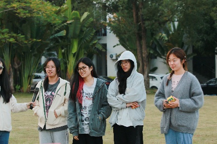 活动伊始,主持人简要介绍了活动的整体流程,随后将21名学生分成了五组,每组配备了一名小组长,以确保活动顺利进行。第一个环节是“单词竞猜”,考验学生日常记诵ACCA相关专业英语单词的打卡效果。在这个环节中,学生们要在一分钟内根据单词卡快速回忆英语单词的中文意思并作答,为此开展了激烈的小组竞赛。第二个环节是趣味游戏“听歌识曲”和“击鼓传花”,学生踊跃参与,活动现场充满了欢声笑语,还有因为大冒险而呈现的师生拥抱温馨画面。活动接近尾声时,每个小组派出一名代表分享体验,大家纷纷表示这次活动不仅有趣,而且增进了班级凝聚力。最后,全体师生在音乐草坪上合影留念,记录下了这难忘的一刻。