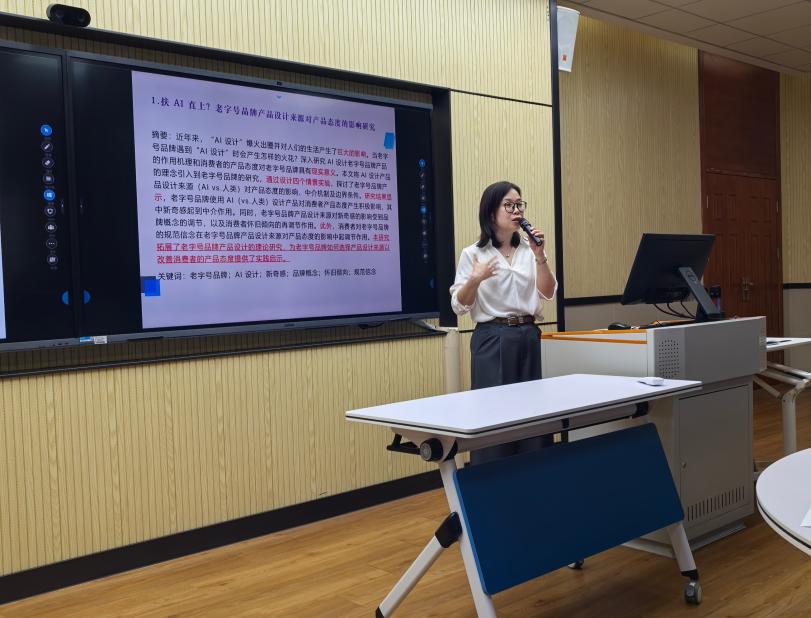 杨媛媛副教授分享了她的研究成果,主题为“AI与品牌研究”。她结合两篇实验方法的品牌研究论文,展开分析了高质量论文的选题、摘要撰写、论文结构、研究方法和数据检验、结果汇报,以及论文的启示部分该如何撰写表达才能符合高水平期刊的标准与要求,吸引编辑与读者。引发了大家对学术论文写作与发表的思考。
