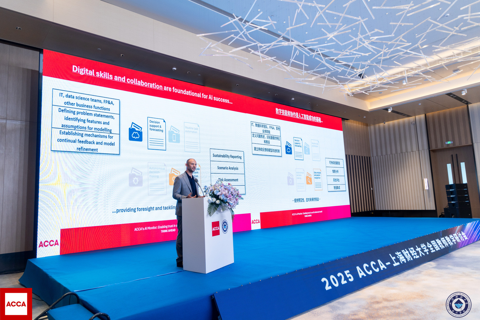 研讨会首日,ACCA全球数字技术研究总监Alistair Brisbourne、中国教育事务团队和上海财经大学会计学院携手ACCA认可雇主、资深会员和ACCA中国资深教学顾问们,聚焦ACCA专业资格变革、能力框架和就业力发展、数字化转型与可持续发展能力建设,分享最新教学理念与实践路径,探讨ACCA学员最佳进阶路径和职业发展方向。