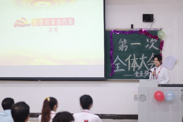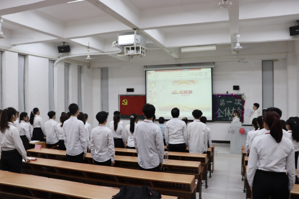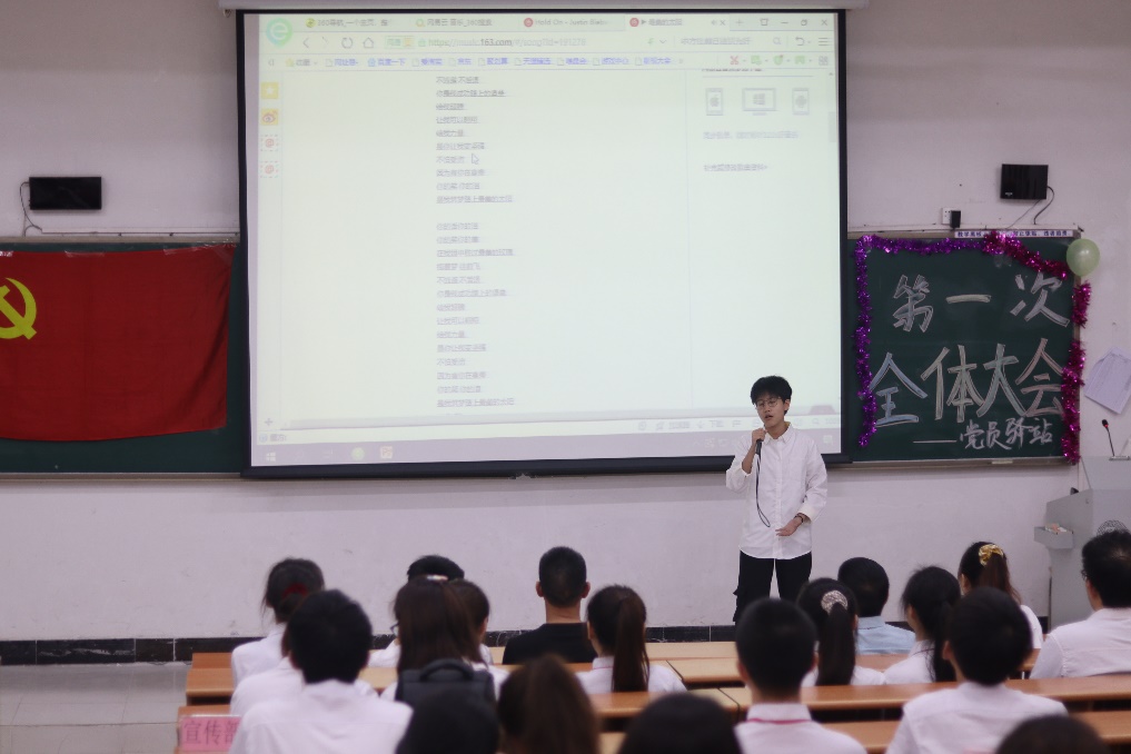 会议过半,团支部干事万欣欣为大家献唱歌曲“最美的太阳”。曲罢,老师和同学们纷纷予以热烈掌声。