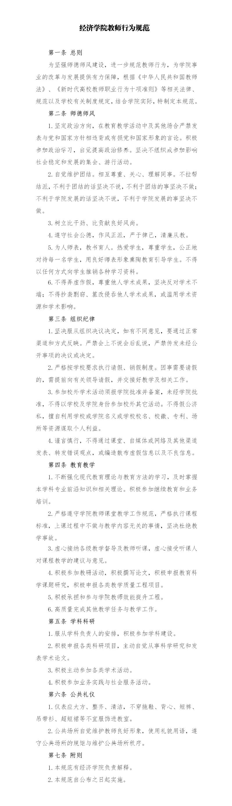 经济学院教师行为规范