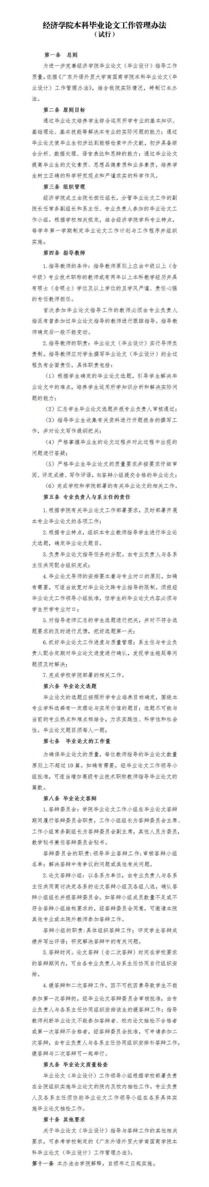 经济学院本科毕业论文工作管理办法 (试行)