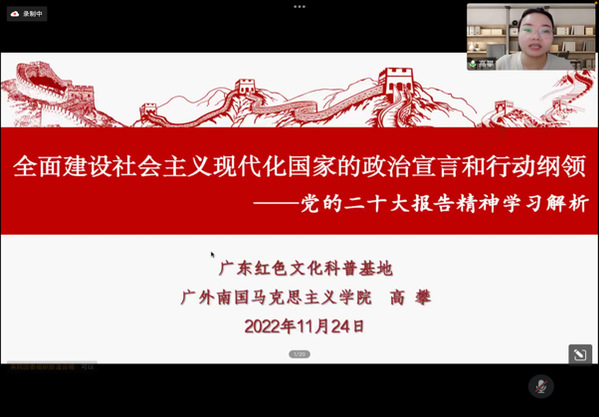 高攀以《全面建设社会主义现代化国家的政治宣言和行动纲领》为题,从基本脉络、核心要点、学习贯彻三个方面对党的二十大精神进行深入解读。