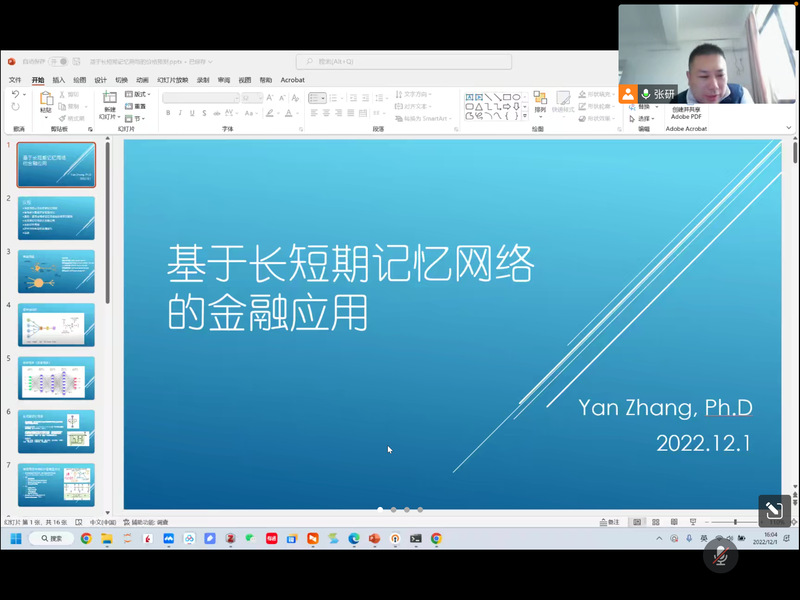 本网讯 12月1日下午,我院张研博士为全体教师作题为《长短期记忆网络的金融应用》的学术分享。会议由副院长王继洲主持。