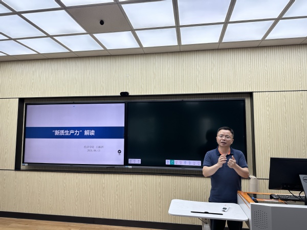 本网讯 6月13日下午,王继洲副院长以“新质生产力解读”为主题展开科研讲座,王继洲从原点论述、经典论述、阐释经典、理论应用四个方面,深入浅出地讲解了“新质生产力”,新质生产力核心是以科技创新推动产业创新,特别是以颠覆性技术和前沿技术催生新产业、新模式、新动能,发展新质生产力。王继洲介绍到新质生产力是最近热度很高且值得研究的领域,希望教师们能以本次讲座为契机,围绕新质生产力开展有组织科研,并尽量与自己的研究方向结合起来,以产出更高质量的研究成果,同时为下半年举办的第二届“南国经济论坛”做好征文准备。(图、文:李健莹)