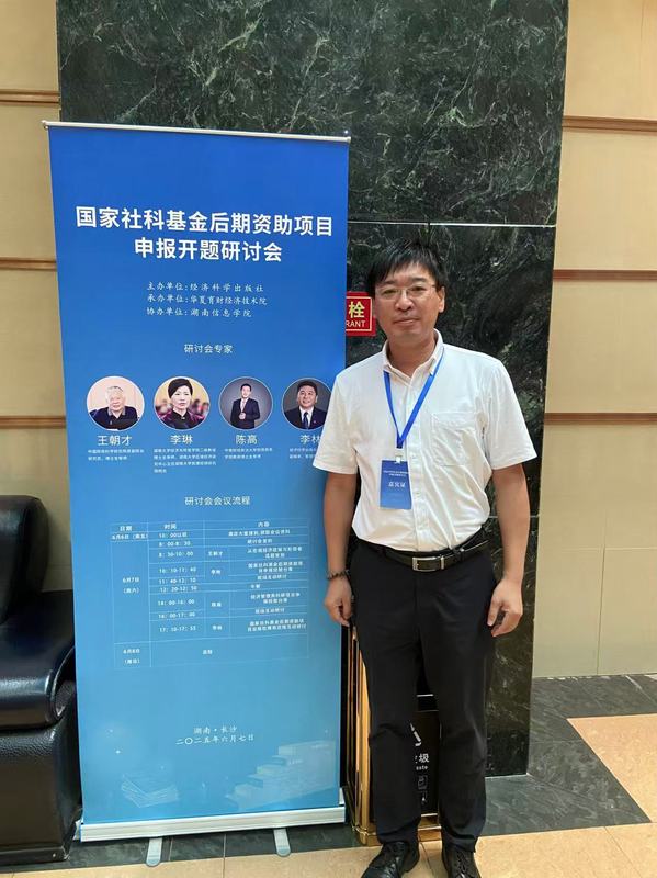 本网讯 近日,经济学院副院长王继洲、李玥受邀出席了由经济科学出版社精心策划、华夏育财经济技术院承办、湖南信息学院协办的“国家社科基金后期资助项目申报开题研讨会”。本次研讨会于2025年6月7日在长沙市召开,旨在为经济学领域的专家学者搭建一个聚焦申报技巧、交流学术心得的高端平台,助力其成功申报国家社科基金后期资助项目。