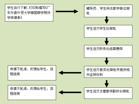 (9) 办理完成后,学生本人将休学申请表复印一式五份,学生所在系、学生处、财务处、教务处、学生本人各保存一份;