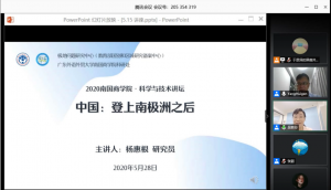 5月28日,一场以“中国:登上南极洲之后”为主题的学术讲座通过“腾讯会议”网络平台开讲,邀请中国极地研究中心主任、研究员、博士生导师(武汉大学、中国科学技术大学)杨惠根担任主讲人。杨惠根是南极科学委员会(SCAR)国家代表,国际北极科学委员会(IASC)副主席、国家代表,国际科联(ICSU)中国委员会委员,Advances in Polar Science主编,中国—北欧北极研究中心(CNARC)主任。国务院突出贡献政府特殊津贴获得者、全国优秀科技工作者、新世纪百千万人才工程计划国家级人选。除了沉甸甸的学术头衔和丰厚的科研成果之外,杨惠根还有着丰富的南极和北极科学考察实践经历,是首席科学家。我校极地问题研究中心、空港经济协同创新研究中心、校科研创新团队、校研究所全体成员,各教学单位中青年骨干教师以及校极地与空港研究会学生等近百人入会学习。我校丁小军董事长、副校长何艾兵教授出席会议现场。