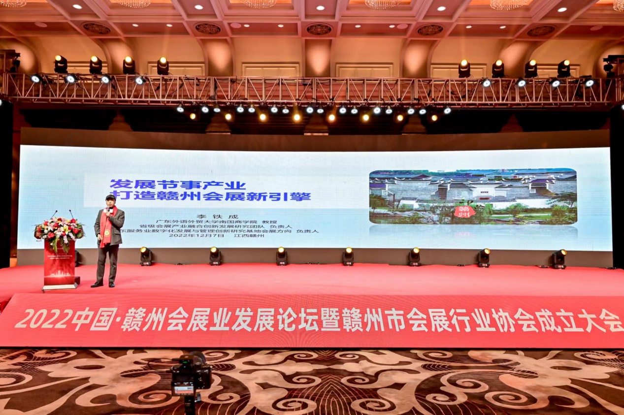 12月7日,2022中国·赣州会展业发展论坛在赣州锦江国际酒店举办。我校省级会展产业融合创新研究团队负责人、广东服务业数字化发展与管理创新研究基地会展方向负责人、会展经济与管理专业负责人李铁成教授受邀参会并发表主题演讲。