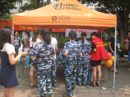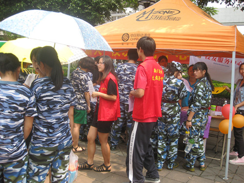 本网讯 9月13日,南国校友服务中心在学院保卫处前的广场进行了新学期的现场招新活动。此次招新对象是面向全体2012级学生,这也是校友服务中心自成立以来开展的首次大规模的招新活动。