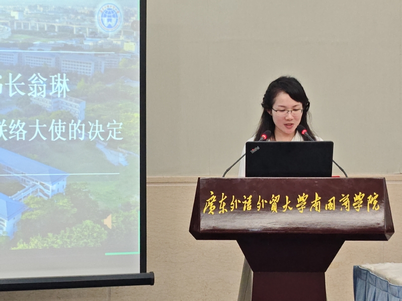 【本网讯】2025年6月20日16:00,由广东外语外贸大学南国商学院校友总会主办的2025届校友联络大使培训大会在C202会议室隆重举行。学校副校长、校友总会副会长赖志立,学校党委宣传部副部长、党办校办副主任舒江津,学校校友总会秘书长、教育学院副院长翁琳,校友总会干事、教育学院院长助理魏迅鸿,校友总会干事、教育学院党总支部书记梁立为,校友总会干事、教育学院行政秘书黄舒悦,校友总会干事、教育学院秘书曹谨及全体2025届校友联络大使出席此次大会。