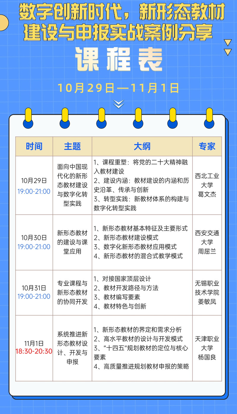 1.参训时间:10月29日至10月31日19:00-21:00;11月1日18:30-20:30
