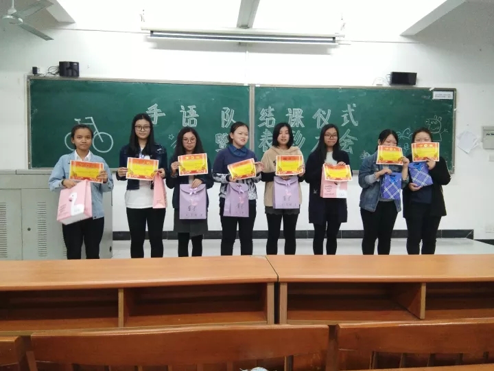 因为看懂《声之形》里的女主的比划而激动,手语在我心中就是通往心灵的语言,因为手语,我始终相信能达到的话语一定会到达。——七月晚风 进入手语队我感触颇深,感觉到手语的魅力,感觉就像手指在跳舞。我在想象着和聋哑人交流的情景,走进他们的世界,分享我们的世界。——疯子 加入手语队这个大家庭是件很开心的事。通过上课,我不仅学会了一些手语,而且我觉得我走进了聋哑人的世界,去感受他们的生活。所以,我觉得学手语很有意义!——Lycorisradiata_yuki 上了一学期手语课,我学到了很多生活用语,还学了歌曲,感觉十分有趣。虽然平时比较少说话,但我还是很开心能和小伙伴们一起学习手语的。——Wun_TING 在手语队的这一个学期,我真的学到了许多,从对手语懵懵懂懂到现在可以表达出许多的词语,真的很谢谢师姐们辛苦的教学!!!——^w^YF 以前以为手语是很高端之物,于是在知道校青志有手语队之后立马报名,而在这一学期的学习之中,除了手语的动作更重要的是我们学到了对聋哑人的奉献,队员之间的羁绊——許锐 原本加入手语队,没有想过要学多好的手语,但是在手语的学习中,收获的不仅是一个个简单的动作,更多的是学会了为聋哑人多一份的关爱。——Shirley Leung 加入手语队以来,认识了可爱尽职的队长们,学习了各种各样的手语知识,认识了不一样的自己。谢谢你,校青志手语队!——夜月星 我觉得我加入了手语队,不仅学习到一些手语知识,而且在学习的过程中很快乐。手语是一种无声的语言,一个个用手做出来的动作,或许像形,或许像字,却也真的是一种很有趣的语言。在手语队中,我更能感受到了手语的魅力。我喜欢学习手语,学习手语使我快乐。——+ 木木 - 从前便觉得手语这一无声的语言很神奇,它可以通过我们的肢体去传达我们想要表达的意思,一直希望自己能学会这种语言,这也是为什么自己想进入手语队的原因,在手语队里学习的时间里是我最放松的时候,而且手语真的比自己想象中的还要有趣。每当想到手语,总会想到“此时无声胜有声”,在我看来这是对手语最好的诠释。——qxl-7950413 我今年志愿参加手语队,怀着对手语队的热情,起初以为自己在原来的组织升为副部,可以将大部分工作转交给师弟师妹,但是差强人意,我没有处理好工作与生活的时间安排,导致我在手语队错失了许多美好的瞬间,随着工作的繁重,我在手语队的兴趣也渐渐减少,但是我心中还是想学习手语的。下学期,我会提高效率,努力调节时间,加大对手语对的投入,提高对手语的热情。最后,我想说声抱歉,自己选择的道路没有好好的走下去,我也想说声谢谢,感谢你们让我加入手语队,成为手语队的一份子,谢谢你们。——p459386763y 不说再见,永远怀念 虽然本学期的手语课已经结束了 但我们对手语的学习热情并未消退 取而代之的是一种坚持 手之言 心之语 遇见手语 遇见手语队的每一个人 是最幸运的事情之一 我们与手语队的故事 未完待续
