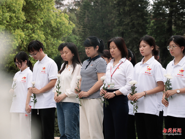 鲜花奠英雄、深情寄哀情。师生们拾阶而上,全场肃然默哀,在肃穆中寄托对革命先烈的无限追思,在缅怀中坚定继承革命遗志的崇高理想。默哀仪式后,师生们献上洁白的菊花,全体人员再次向广州起义英烈致敬。中国共产党风华正茂,百年奋斗铸就辉煌,正是无数革命先烈以鲜血和生命铸就新中国,用“虽万难其志不渝”的信念撑起党的脊梁,为中华民族伟大复兴铺就基石。