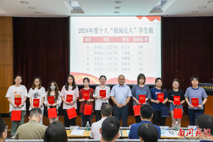 本网讯 4月23日下午,由校图书馆主办的“书筑华章,阅启新程”南国读书月启动仪式在学术报告厅F101举行,现场发布《2024年度校园阅读报告》,揭晓年度阅读榜单及“书香学院”等评选结果(详见推文)。校党委书记许志超,党委副书记、副校长赵福春,教务处、学生处、图书馆负责人,各学院师生代表、获奖师生、风衍悦读社成员及图书馆志愿者近200名师生代表参与。本次读书月将持续一个月,通过主题书展、阅读积分赛、帆布袋DIY等多元形式深化校园阅读文化。启动仪式由图书馆副馆长于凝雨主持。