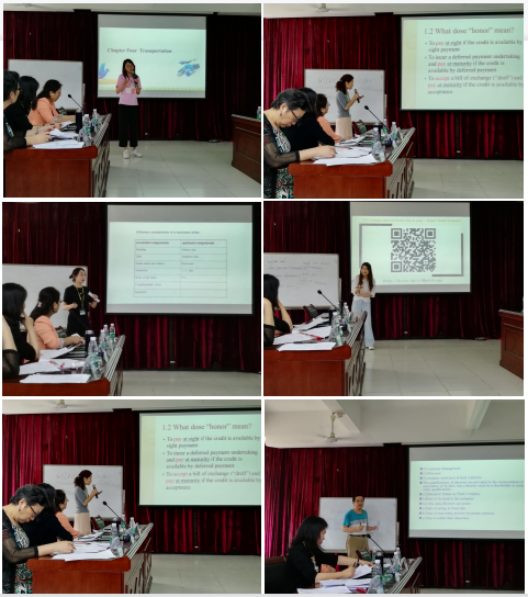 最后,周文贵教授作了点评,主要讲了三点:第一,每位参训教师的英文语言能力客观上存在差异,有的老师有机会出国留学,英文表达要好一些,有的老师不具备这样的学习经历,英文的表达可能会相对差一些。但要想成为一名合格的全英(双语)教师,英语的口头表达一定要基本通畅,这是上好全英(双语)课程的基本条件;第二,教师授课重在“讲课”,讲课时要跟学生有自然的眼神甚至情感交流,不可以只是盯住PPT课件或备课材料“读课”或“背课”;第三,虽然不同老师可以有不同的教学风格,但老师进入课堂对教态、仪表、着装等等都一定要谨守稳重、规范的基本要求,以营造良好的课堂氛围。